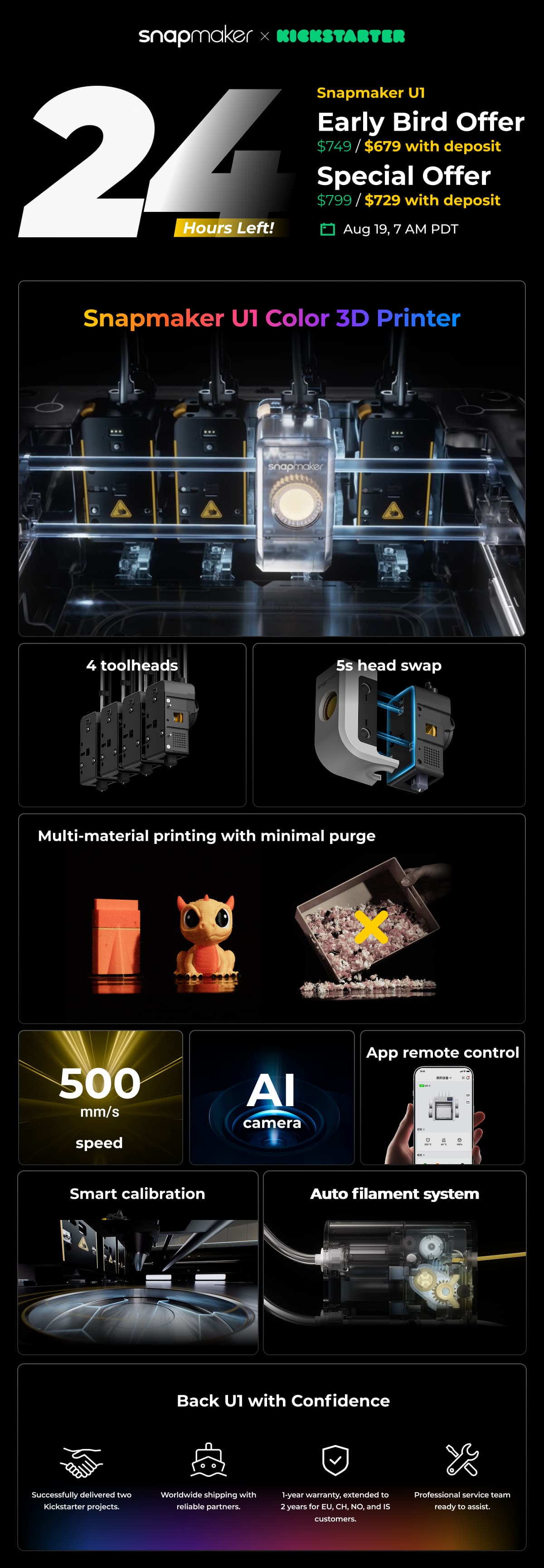 The Snapmaker U1 Kickstarter goes live on Aug 19, 7 AM PDT (4 PM CEST).