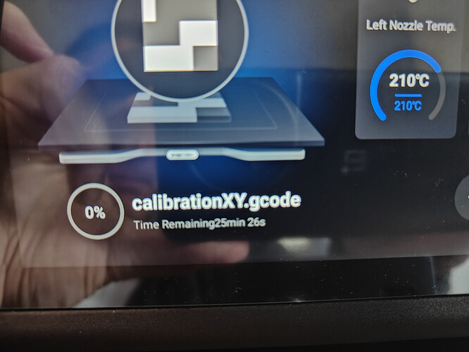 Stuck at print check model (5/6) xy offset calibration. Nothin moving. Percentage complete never rose above 0%. Oddly the time remaining clock counted up…not down