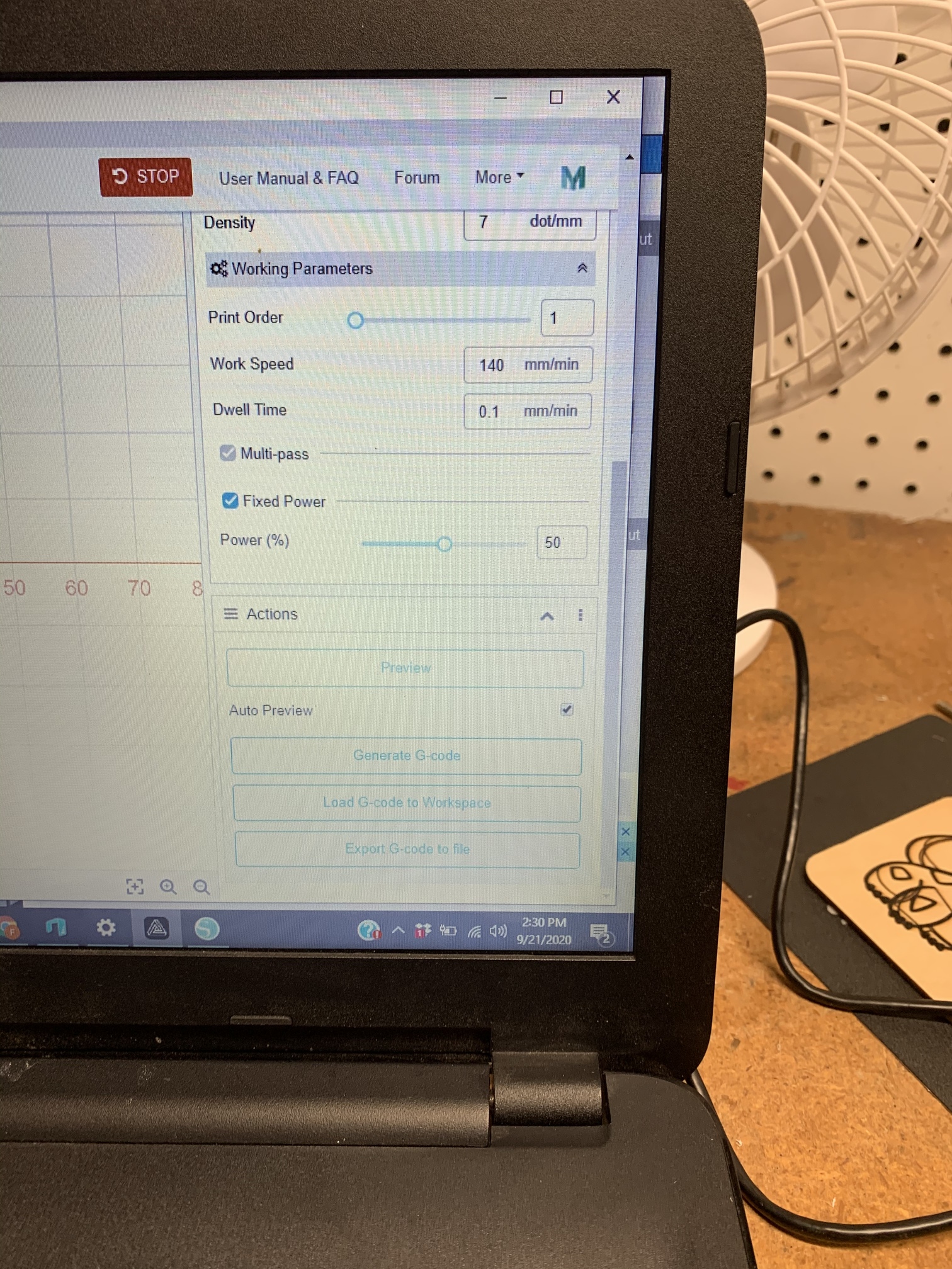 Also I did change to those settings and it still doesnt produce anything on the wood.