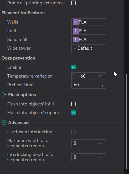 screenshot added of Multimaterial Ooze prevention in Orca. I think this means that the other nozzle will be 60 degrees lower than active nozzle? in which case, I would think that’s okay to prevent oozing? but by all means tell me if I’m wrong.