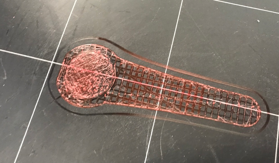 The result is attached. It didnāt look great, but it was printing. The round portion was fully in contact with the build plate (on the left side of the image). Note this particular item required support along the long end of the print (to the right). After a while, it was just printing āin airā and the filament was bunched up in the head again, not extruding.