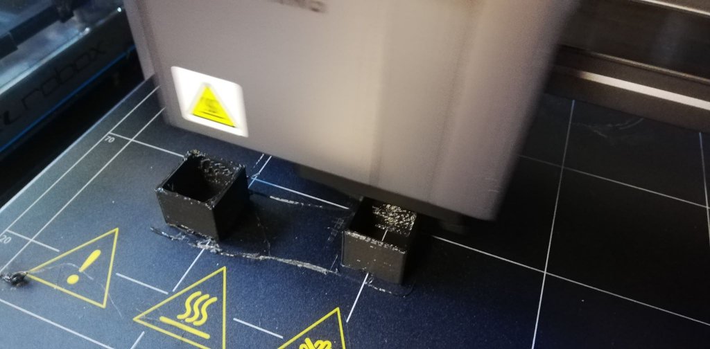 2 test cubes printed all at once mode so lots of retractions, using CURA 4.2 at 40mm/sec . Am sure flow setting could be tuned a bit. Outer wall printed at 30mm/s