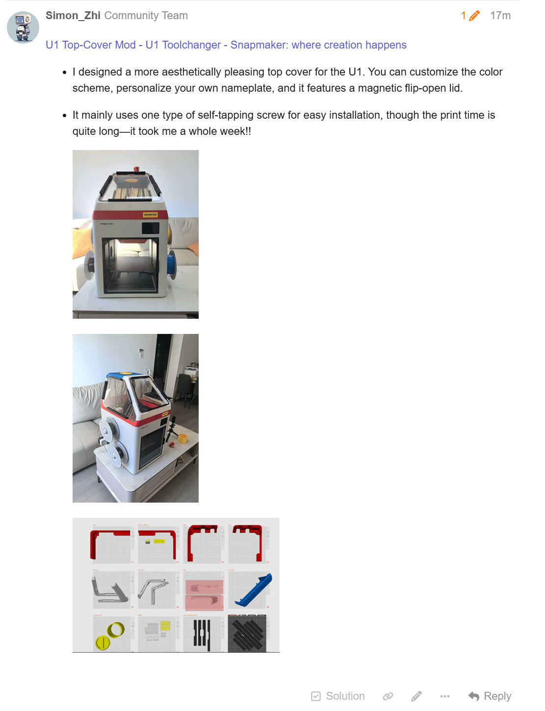 I designed a more aesthetically pleasing top cover for the U1. You can customize the color scheme, personalize your own nameplate, and it features a magnetic flip-open lid.