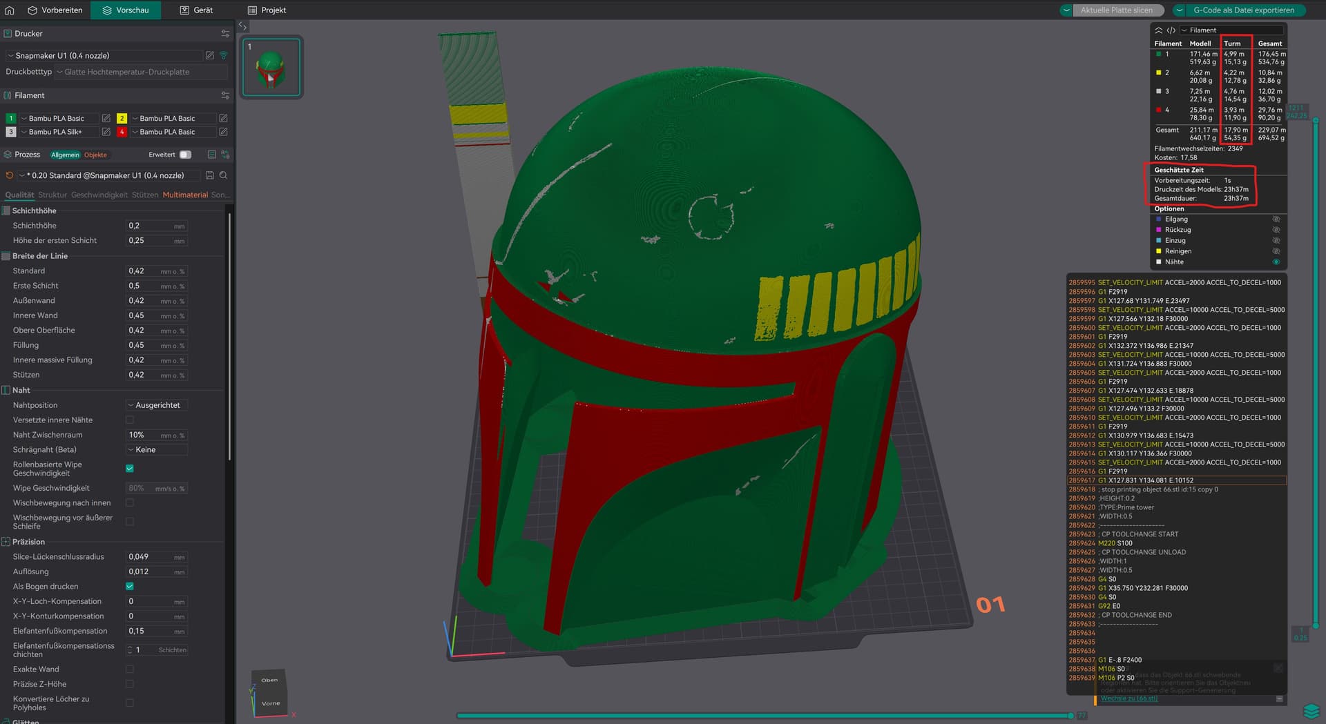 I’m slicing some multi-color models in OrcaSlicer v2.3.1-dev, and the results got me thinking: how much time and filament waste can we save using a toolchanger like the Snapmaker U1 vs a single-extruder printer with the filament changer system?