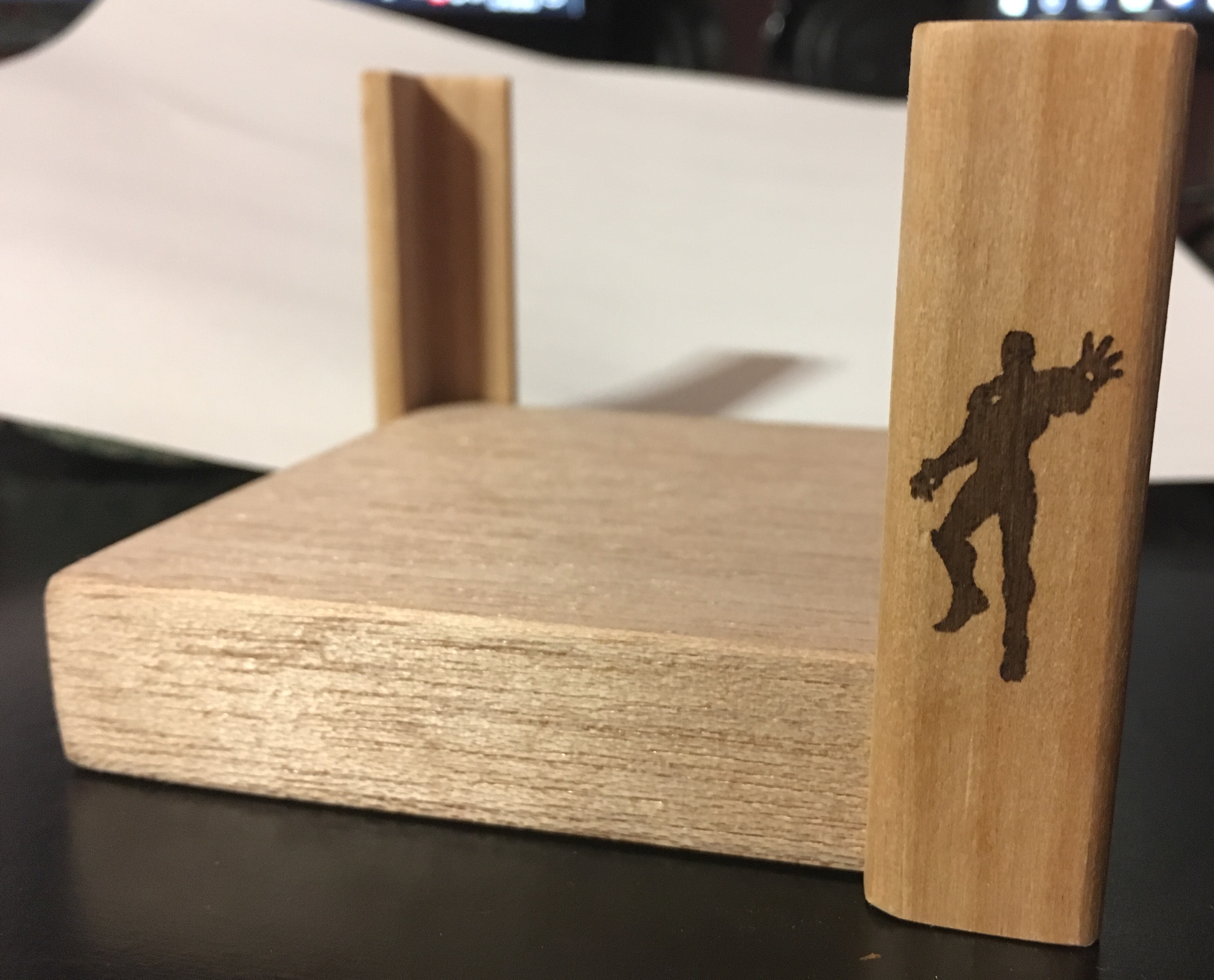 Coasters are made from 1/2 x 4 poplar and the base is 1 x 4 and pretty sure the wood is maple. Can’t remember because I bought the wood a long time ago. The posts are 3/4 x 3/4 oak outside corner molding. Still amazes me how well the SM laser does with fine details. Those silhouettes are only 14 mm wide